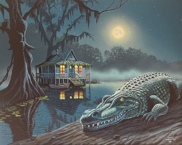 This is an original acrylic painting titled “Swamp Summer Night”