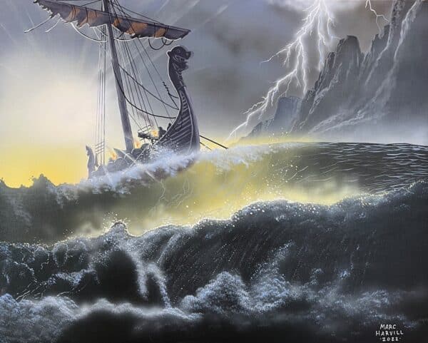 This is an original acrylic painting titled “Viking Voyage”